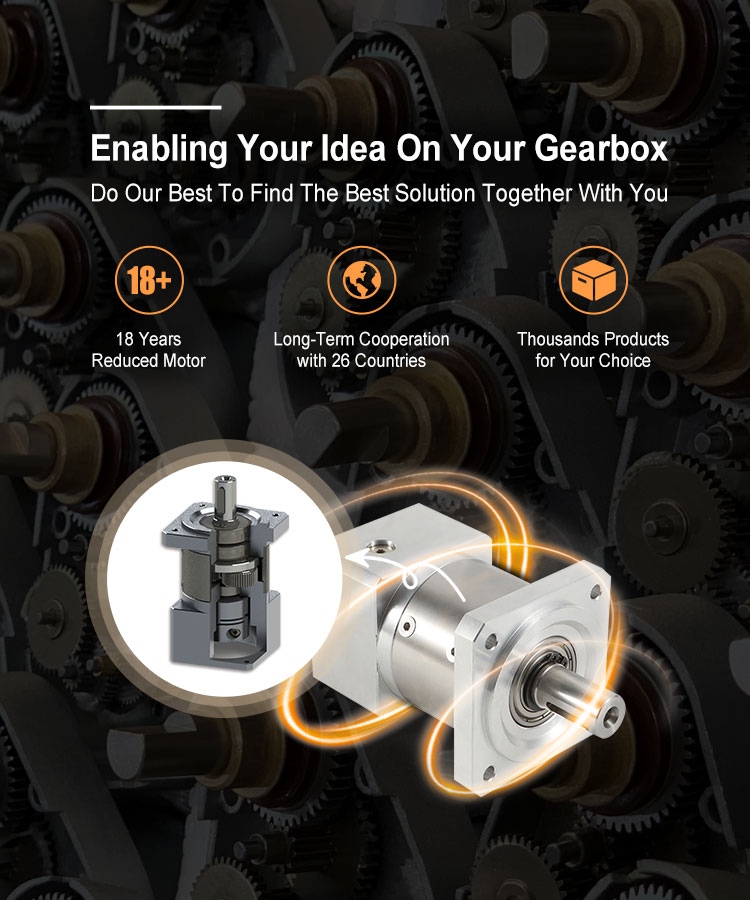Disponible solo como caja de cambios o combinado con la gama de motores BLDC, PMDC, paso a paso o servomotor Inovance. Para obtener más información y ayuda con el tamaño, contáctenos al sales@ichmo.com